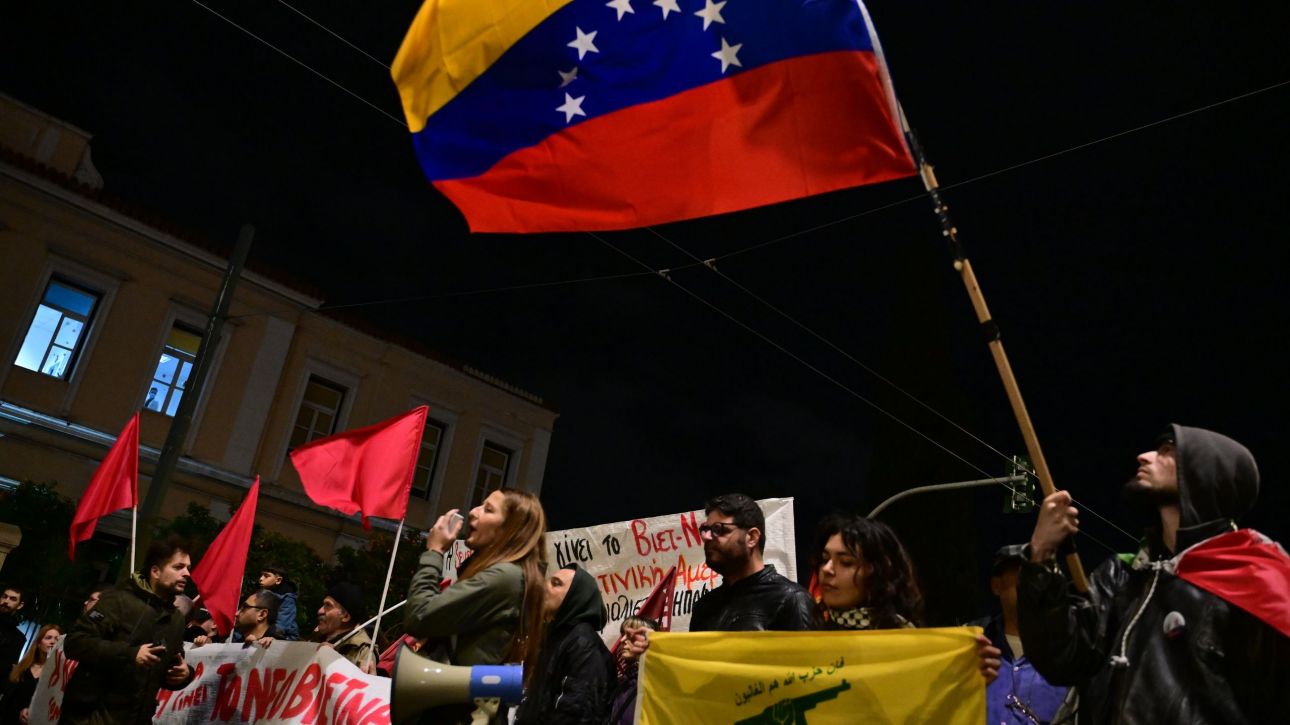 Διαδήλωση έξω από την αμερικανική πρεσβεία ενάντια στην επίθεση των ΗΠΑ στη Βενεζουέλα